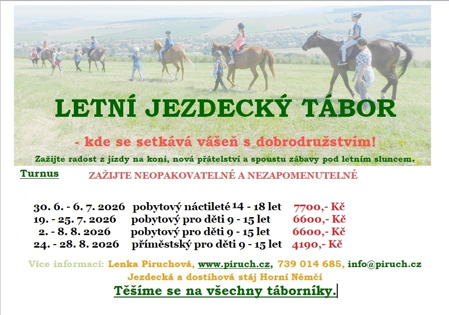 Stručně řečeno: Šest dní nabitých koňmi, novými dovednostmi, zábavou a kamarády. Vše v malé skupině a se super péčí. Bude to nezapomenutelné léto!