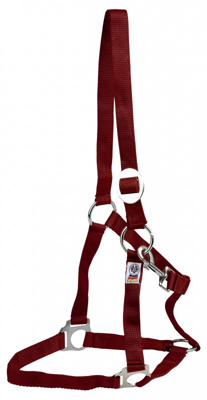 Ohlávka z jednoduchého nylonového popruhu, s karabinou na levé straně, nastavitelná za ušima